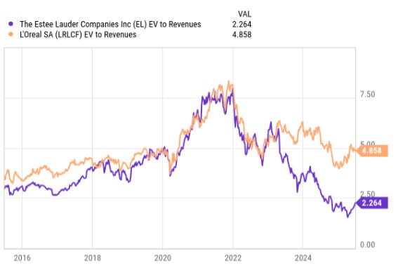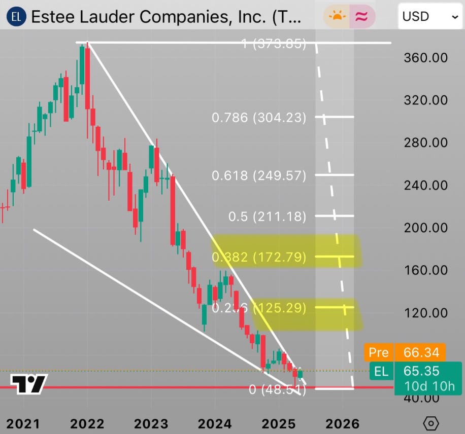 2021-ci ildə Estée Lauder-in səhmləri 370$-dan yuxarı qiymətləndirilirdi. Wall Street-də sabit böyümə və yüksək keyfiyyətli gəlir mənbəyi kimi qəbul olunurdu. Lakin pandemiyadan sonra dəyişən qlobal istehlakçı davranışı, Çində iqtisadi zəifləmə, travel retail kanalının dağılması və ticarət gərginlikləri şirkəti çox ciddi zərbə altında qoydu. Nəticədə 2025-ci ilin ortalarına qədər səhmlər 75%-dən çox düşərək 85$ ətrafına qədər gerilədi.