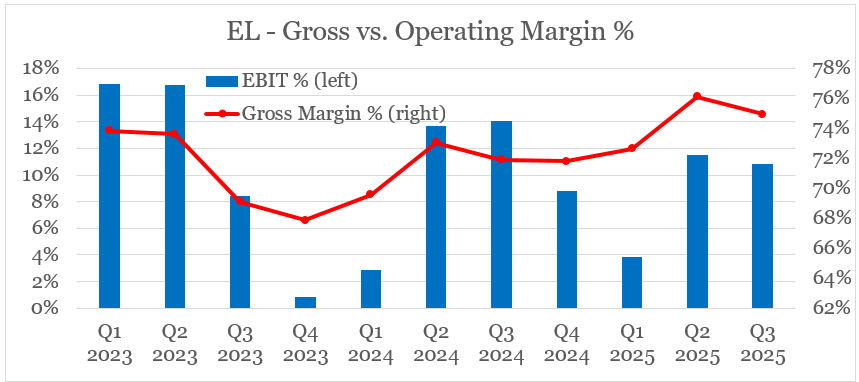 Travel retail kanalının çöküşü – 2015–2019-cu illərdə ən çox böyüyən satış kanalı olan duty-free mağazalar artıq Estée Lauder üçün mənfəət deyil, zərər mənbəyi oldu. Yalnız 2024 Q3-də bu kanalda satışlar 28% azaldı.