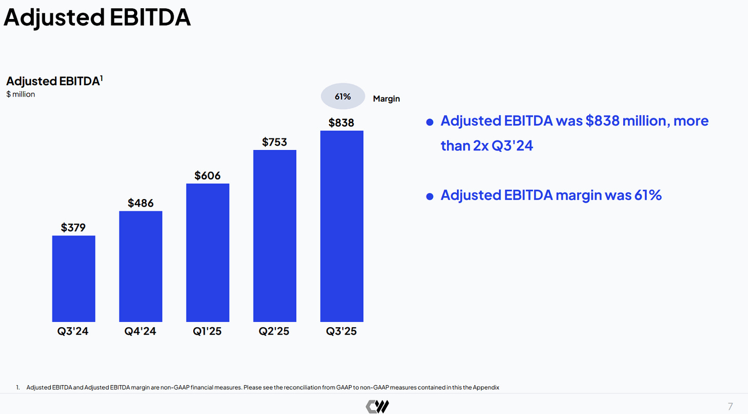 Lakin hər sürətli yüksəlişin riskli tərəfi də olur. CoreWeave-in maliyyə hesabatları iki paralel istiqamət var. Bir tərəfdə 838 milyon dollarlıq Adjusted EBITDA və 61%-lik güclü marja var. Digər tərəfdə isə 311 milyon dollarlıq rüblük faiz xərci və nəticədə 110 milyon dollarlıq GAAP - xalis zərər dayanır. Bu fərq bizə bir şeyi açıq göstərir: ki, əməliyyat mühərriki güclüdür, amma ona sərf olunan kapitalın qiyməti də ağırdır.
