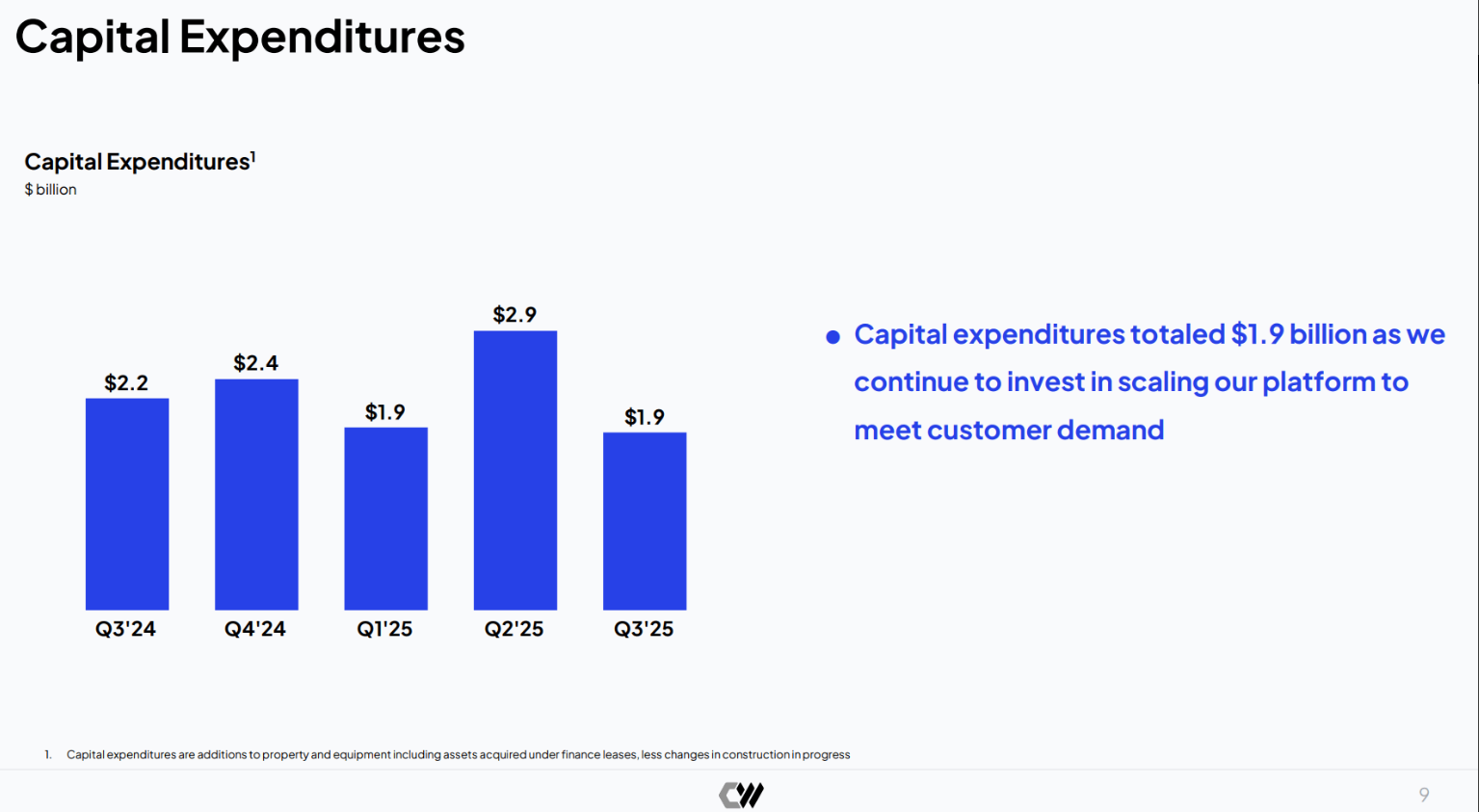 Şirkət sürətlə böyümək üçün aqressiv şəkildə investisiya edir. 2024-cü ildə 8.7 milyard dollar CapEx xərclənib. Q3-də təkcə 1.9 milyard dollar kapital xərci edilib. Bu, sadəcə proqram təminatı şirkətinin böyüməsi deyil, bu, fiziki infrastrukturun qurulmasıdır – torpaq, enerji, server, soyutma, şəbəkə və s. Ümumi borcun 17 milyard dollara yaxınlaşması bu böyümənin kreditlə maliyyələşdirildiyini göstərir. CoreWeave-in strategiyası aydındır - əvvəl bazar payını ələ keçir, sonra mənfəəti düşün.