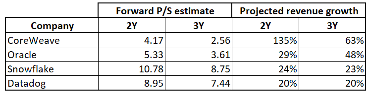 Qiymətləndirmə baxımından CoreWeave maraqlı bir vəziyyətdədir. Forward EV/EBITDA təxminən 21x səviyyəsindədir ki, bu da NVIDIA -dan aşağı, amma bəzi digər AI infrastruktur oyunçularına yaxın səviyyədədir. Trailing P/S 8x civarındadır və bu, NVIDIA kimi liderlərlə müqayisədə xeyli aşağıdır. Bu, bazarın şirkətə müəyyən risk endirimi tətbiq etdiyini göstərir. Bazar hələ CoreWeave-i “qüsursuz icra şirkəti” kimi görmür.