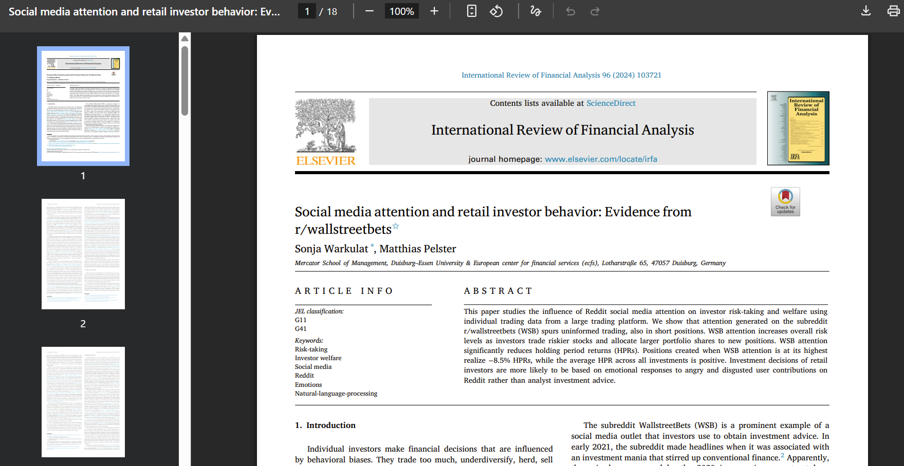 Tədqiqatlara görə, Reddit-də yaranan diqqət (WSB attention) bazarda uninformed trading — yəni məlumatlı olmayanların treydinqi — artırır və səhv yönəlmiş short satışlara və ya alışlara səbəb olur.